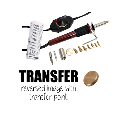 The next step was to heat transfer. I used a wood burning kit I purchased from Michael's with the transfer point.